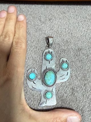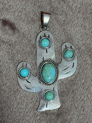 Colgante con diseño de cactus y detalles en turquesa. - Colgante . - Diseño de cactus y simulando piedras turquesas. Estilo boho. Muy original ideal para llevar con cadenas o cordones largos. Incluso como llavero poniendole una arandela