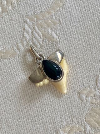 Colgante en plata con diente de tiburón y piedra natural onix. Comprado en República Dominicana. Nuevo a estrenar.