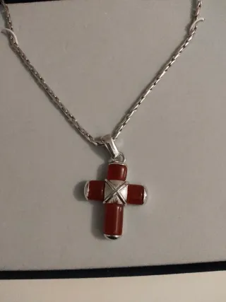 Colgante de plata 925 y coral. Medida 2×1,1 cm con el engarce. Se entrega con bolsita para regalo.