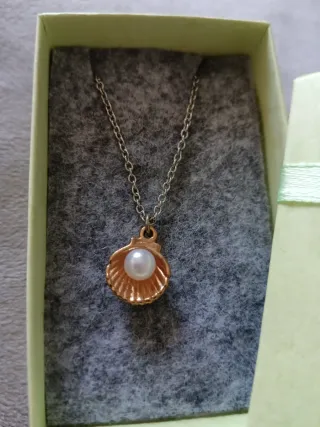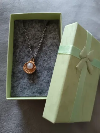 Elegante colgante con forma de concha y una perla en su interior. - Diseño de concha. - Perla central. - Cadena de acero inoxidable - Incluye la caja.