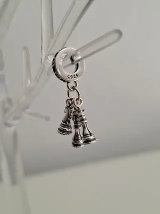Colgante con ajedrez perfecto para pulseras. - Diseño detallado tres piezas ajedrez - Acabado plateado.