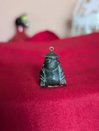 Este colgante es un amuleto con la figura de un Buda. - Diseño detallado. - Acabado en gade verde y plateados.
