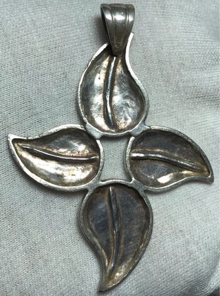 Colgante de plata de ley grande al parecer simulando una flor con cuatro pétalos muy bonito con sus punzones en la parte superior perfecto para poner una cadena o regalar, pesa 12,69g Regalo además un fósil de diente de Otodus Obliquus el antepasado del Megalodón Entrega en mano en Málaga o envío a toda España. Más lotes similares en mi perfil *No mirar* oro antiguas moto circular limpiar chimenea cadena detector metales sellos llaveros fósiles militar coche piso fusil guerra civíl pieza detector garaje puerta