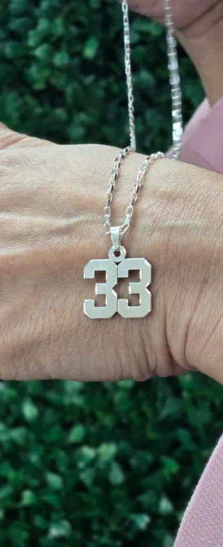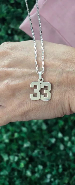 Colgante con el número 33 y cadena forzada. - Material: Plata de Ley.