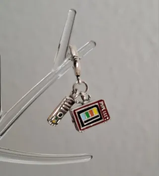 Conjunto de charms con diseño de televisor y mando a distancia. - Charm de televisor con pantalla multicolor. - Charm de mando a distancia con detalles. - plata S925. Envio rapido