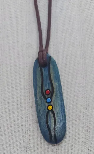 Colgante de madera azul y multicolor