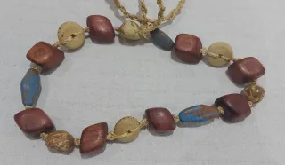 Colgante artesanal hecho con cuentas de madera y detalles en cuerda. - Diseño único con cuentas de madera de diferentes formas y colores. - Cuerda resistente que une las cuentas.