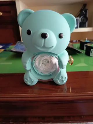 Adorno de osito en color azul con un colgante de corazón en su interior. El colgante tiene una peculiaridad que mirando la esferita, se ve en varios idiomas""TE AMO"" , ideal para regalos de enamorados día de "San Valentín" el osito le das la vuelta y por un lado tiene el colgante y por el otro tiene una flor . - Diseño de osito. - Colgante con forma de corazón.