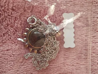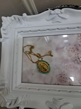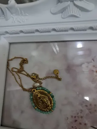 Elegante collar con medalla de la Virgen, fabricado en acero inoxidable. - Medalla con detalles en relieve. - Cadena dorada. - Abalorios verdes alrededor de la medalla. 20e Colgante plata con piedra natural, sin estrenar sin etiqueta 30e