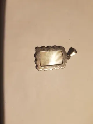 Elegante colgante rectangular con un diseño de nácar en el centro. - Elaborado en plata de ley. - Detalle de borde ornamental. - Cierre seguro para cadena.