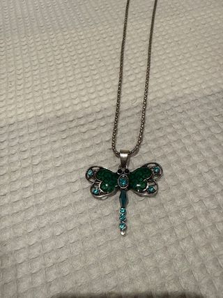 Elegante cadena con un colgante en forma de libélula. El diseño detallado y los adornos le dan un toque especial. - Colgante con forma de libélula. - Cadena de eslabones finos.