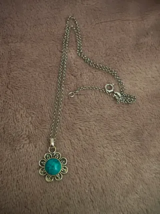 Elegante colgante con diseño de flor y piedra turquesa. - Cadena de plata. - Detalle floral en el colgante.