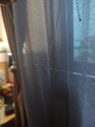 Elegante colgante con dos aros entrelazados. - Cadena fina y delicada. - Cierre de mosquetón.