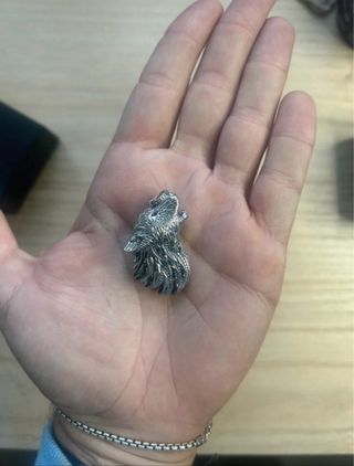 Colgante con diseño de cabeza de lobo. - Elaborado en plata. - Detallado diseño de lobo con melena.
