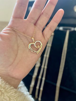 Precioso colgante con forma de corazón y la palabra Mom grabada. Un detalle especial. - Diseño de corazón. - Palabra Mom integrada. - Cadena dorada. - Chapado en oro, no oxida y es hipoalergénico.