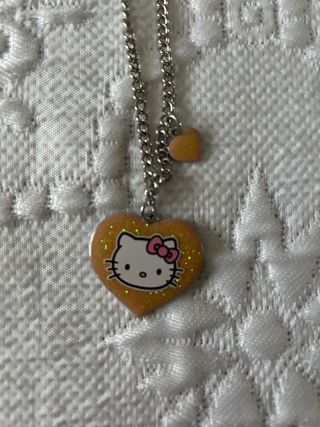 Este encantador colgante presenta un diseño de corazón con la icónica Hello Kitty. - Colgante con forma de corazón. - Detalle de Hello Kitty. - Cadena plateada.