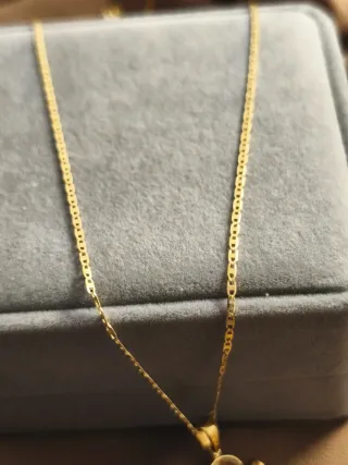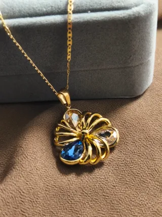 Elegante collar con un colgante chapado en oro de 18 quilates. El diseño del colgante es floral y está adornado con una gema azul. - Colgante con diseño floral. - Gema central de color azul. - Cadena chapada en oro de 18k.