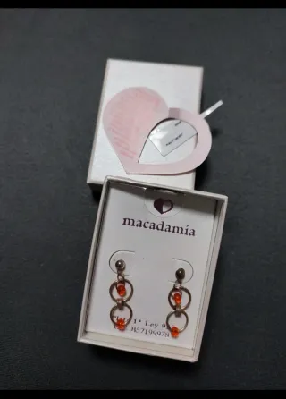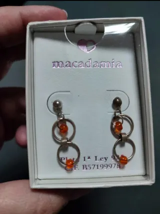 Elegantes pendientes de la marca Macadamia. Nuevo en su caja. Ideal para regalar - Fabricados en plata de ley. - Detalle de cuentas en color naranja. - Diseño colgante con aros. #pendientes #regalo #navidad #santa #reyes #oferta #plata