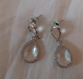 Elegantes pendientes largos con un diseño de lágrima y detalles de pedrería. - Colgante en forma de lágrima. - Borde adornado con pequeñas piedras brillantes. - Cierre de presión.