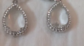 Elegantes pendientes de plata de novia con un diseño detallado y brillante. Liquidación de tienda, miden 6cm. - Adornados con múltiples cristales. - Diseño colgante con forma de hoja. - Cierre seguro para llevarlos cómodamente.