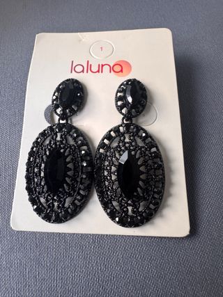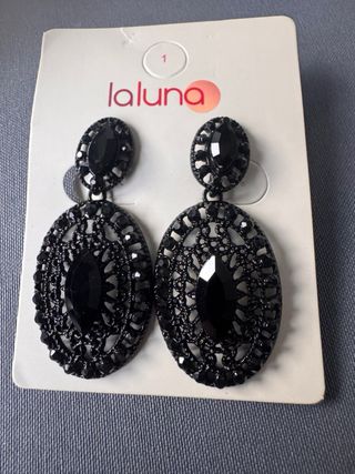 Elegantes pendientes colgantes de la marca Laluna con incrustaciones de cristal. - Diseño ovalado con detalles calados. - Cierre de presión.