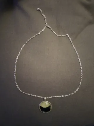Collar con un bonito colgante con diseño de gato. - Colgante redondo con imagen de gato. - Cadena de eslabones plateada.