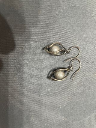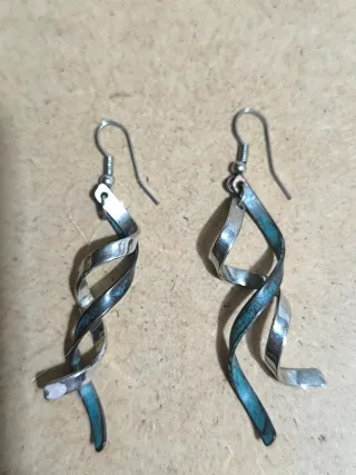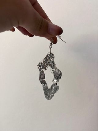 Pendientes de resina color plata / gris. Diseño wave redondeado colgante, con brillo, purpurina. Cierre de anzuelo. Nunca usados.