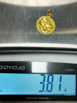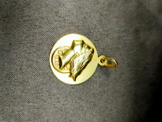 Colgante con medalla de oro de 18 quilates. - Diseño clásico y elegante. - Acabado pulido brillante.