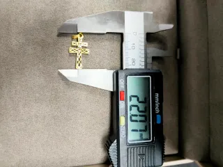 Colgante de la Cruz de Caravaca. - Fabricado en oro de 18 quilates. - Diseño calado con detalles. - Incluye asa para cadena.
