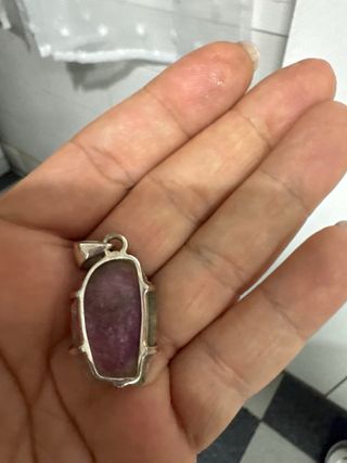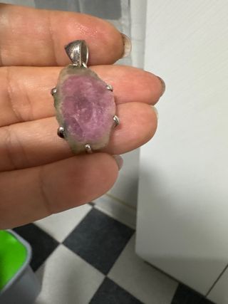 Colgante de plata con una piedra de turmalina sandía. La piedra presenta una combinación de tonos verdes y rosados. - Colgante de plata. - Piedra de turmalina sandía.