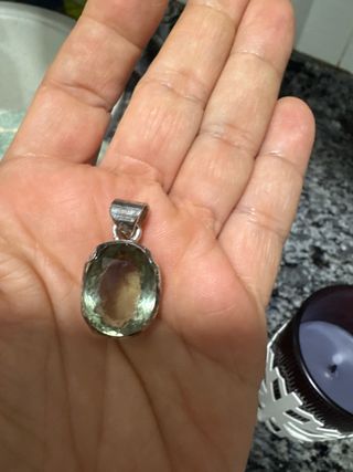 Elegante colgante con cuarzo verde facetado. - Plata de ley. - Piedra con talla facetada.