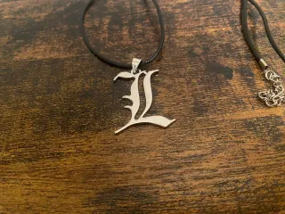 Colgante con la letra L, inspirado en Death Note. - Diseño de la letra L. - Cordón negro incluido. - Cierre de mosquetón.