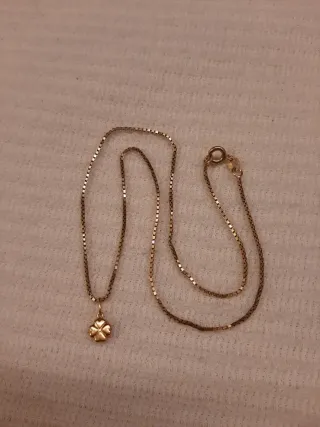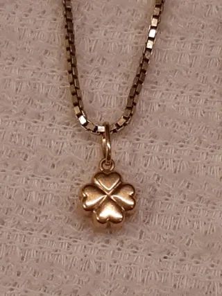 Collar con un delicado colgante en forma de trébol. - Diseño de trébol. - Cadena tipo caja. Pequeño y discreto.