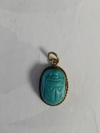 Este colgante presenta un diseño de escarabajo tallado. - Detalle de escarabajo. - Marco con acabado dorado.