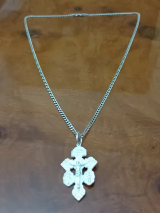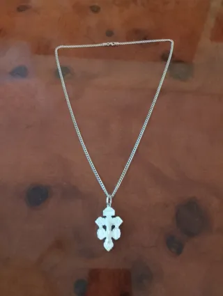 Elegante cadena con colgante en forma de cruz. - Fabricado en plata de ley. - Diseño con pequeñas cuentas en la cadena.
