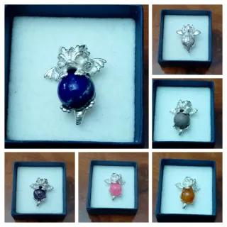 Colgante de plata de ley 925 con un diseño de dragón sujetando una piedra semipreciosa. - Plata de ley 925. - Diseño de dragón detallado. - Incluye una 5 piedras Amatista Lapislázuli Rodocrosita Cornalina y Cuarzo Rosa.