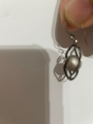 Conjunto de pendientes y colgante con diseño de meteoritos. Comprados en una feria de geología. - Piezas únicas con acabado plateado. - Cierre de anzuelo en los pendientes.