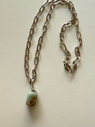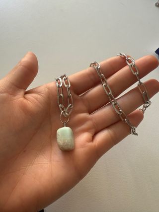 Colgante con piedra aguamarina y cadena de eslabones. - Piedra natural aguamarina. - Cadena plateada. - Diseño moderno y elegante.