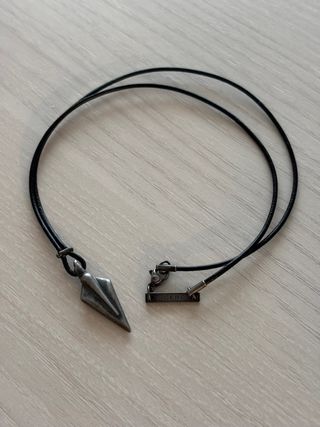 Colgante con forma de flecha y cordón negro y pulsera - Diseño de flecha metálica. - Cierre de mosquetón.