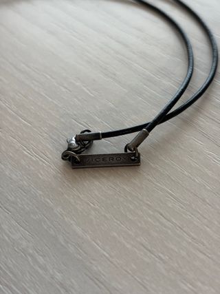 Colgante con cordón de cuero marrón y detalle metálico..Unisex - Material del colgante: acero. - Material del cordón: cuero.