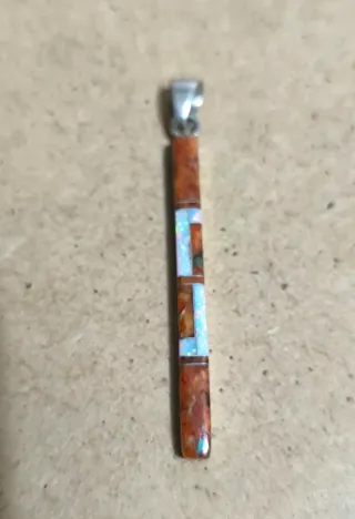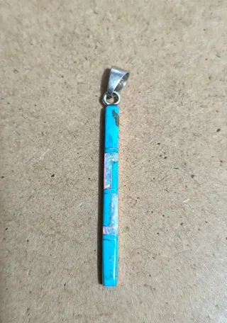 Elegante colgante de plata con incrustaciones de piedras semipreciosas Hecho a mano en USA. - Diseño alargado con detalles en turquesa y ópalo. - Cierre de plata para cadena. Sterling Silver 925 Nice Genuine Multi Gemstone Inlay Pendant Handcrafted In USA .