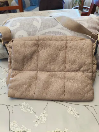 Bolso de polipiel muy suave al tacto, con un diseño acolchado y detalles de colgantes.Tiene un bolsillo con cremallera y dos más pequeños - Material: Polipiel. - Diseño acolchado. - Incluye colgantes decorativos.