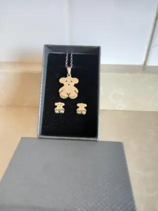 Conjunto de joyería con colgante y pendientes. - Fabricado en acero inoxidable. - Diseño de oso. - Incluye un colgante y dos pendientes.