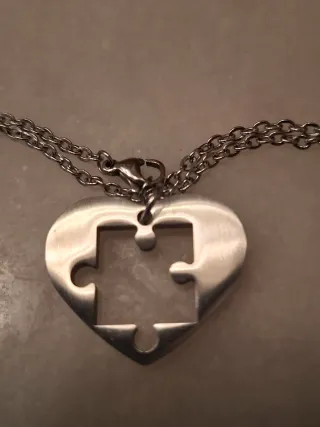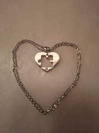 Colgante con forma de corazón y diseño de puzzle. Es un accesorio elegante y moderno. - Material: Acero - Color: Plateado