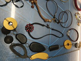 5 collares, colgantes diferentes, con material reciclado y cadena, observa las fotos