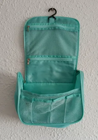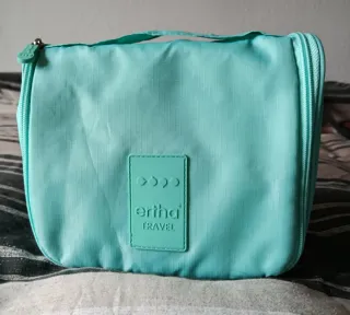 Neceser colgante de la marca Ertha en color teal. Ideal para organizar tus artículos de aseo y tocador. - Diseño funcional con asa para colgar. - Cierre de cremallera. - Compartimentos interiores para una mejor organización.