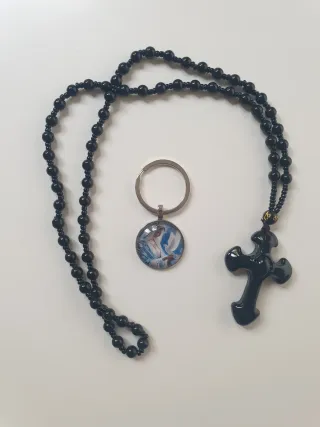 ✝️ Conjunto de collar cruz negra y llavero con detalles religiosos. ☆ Llavero con imagen de la Virgen,bisuteria. ☆ Collar cruz negra acrilico con cadena de cuentas negras. Nuevos. Precio por los 2 *Cambio mucho los anuncios, si te gusta algo cómpralo ó resérvalo antes de que lo quite! ;) *No regateos. *VISITA mi perfil,tengo muchas cositas y PUEDES CREAR UN LOTE de envio para pagar un solo coste. *Envio por wallapop o entrego en mano en Zaragoza