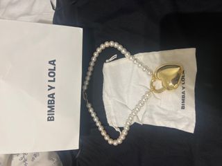 Elegante collar de perlas de la marca Bimba y Lola. - Diseño con perlas blancas y detalles dorados. - Incluye bolsa de tela para guardarlo.