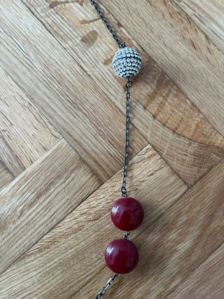 Elegante collar de Bimba y Lola con detalles en dorado y rojo. - Diseño con cuentas y colgantes. - Cordón ajustable.