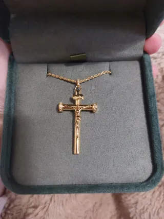Colgante dorado con diseño de cruz. También puede usarse como pendiente. - Acabado en tono dorado. medalla colgante cadena collar cruz oro plata dorado plateado arte religioso santo virgen cristo